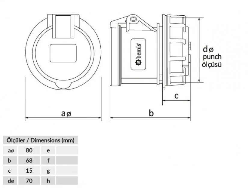 Bemis BC1-1505-2440 CEE Norm IP44 5/16A Somunlu Priz