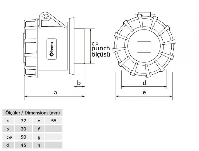 Bemis BC1-3102-7414 CEE Norm IP67 32A Makine Priz (Tek Parça) - 2