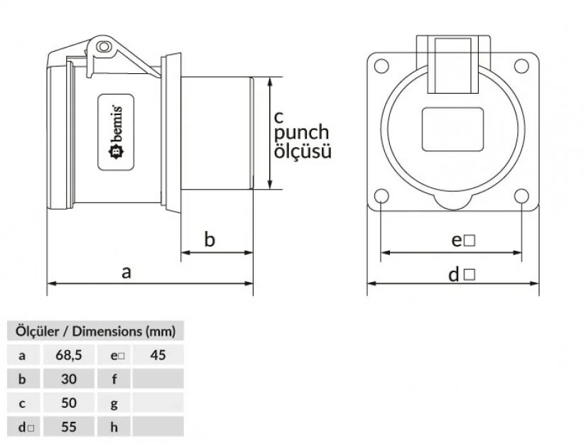 Bemis BC1-3103-2414 CEE Norm IP44 32A Makine Priz (Tek Parça)