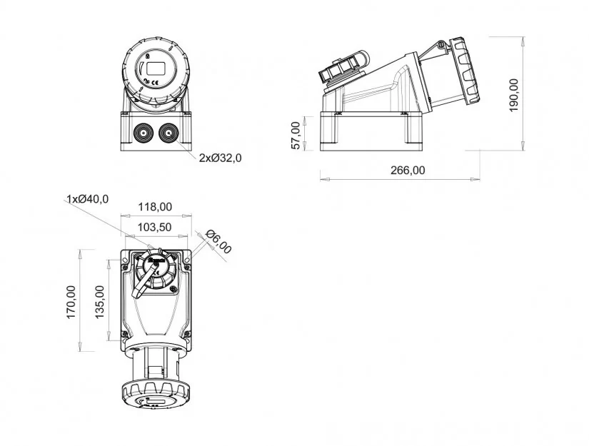 Bemis BC1-4303-7537 CEE Norm IP67 63A 90° Eğik 1/16A. Makine Prizli Duvar Priz - 2