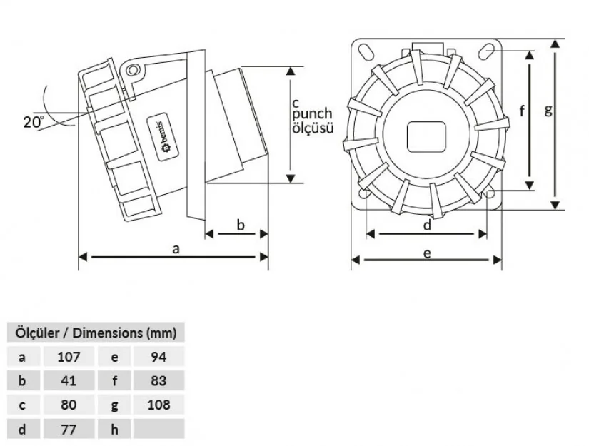 Bemis BCS-3403-7420 CEE Norm IP67 3/32A 45° Eğik Makine Prizi - 2