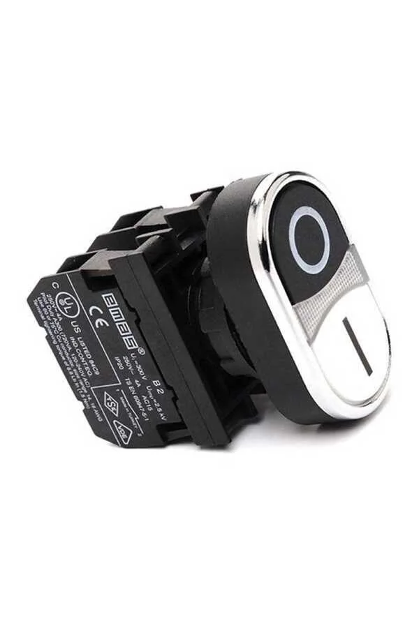 Emas B102B20HB Plastik 1NO+1NC Çiftli Büyük Düz Siyah-Beyaz 22 mm Buton - 1