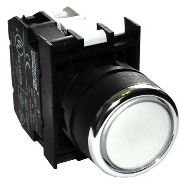 Emas B1B0DB Plastik LED'li 1NO 100-230V AC Yaylı Düz Beyaz 22 mm Buton