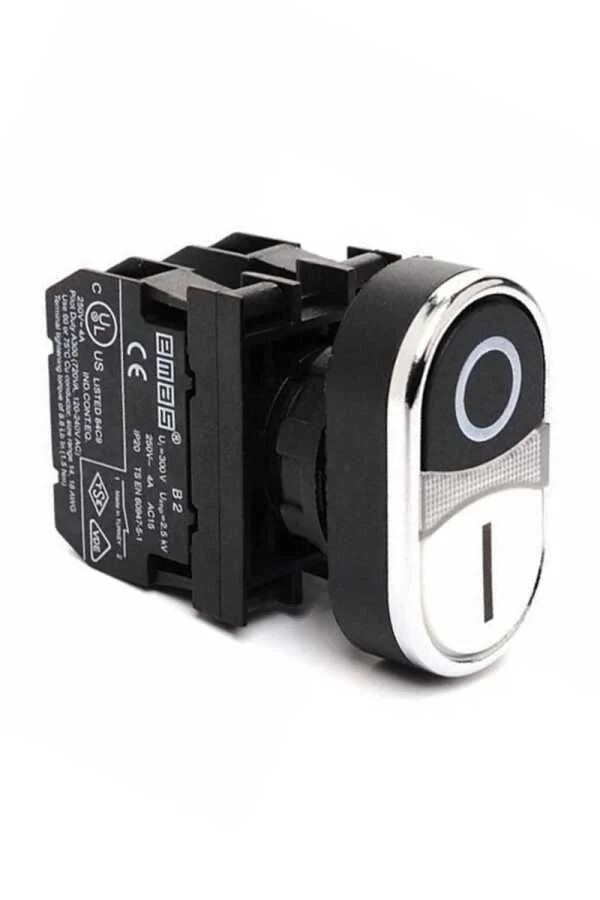 Emas CM102K20HB10 Metal 1NO+1NC Çiftli Düz Siyah-Beyaz (0-I) Baskılı 22 mm Buton