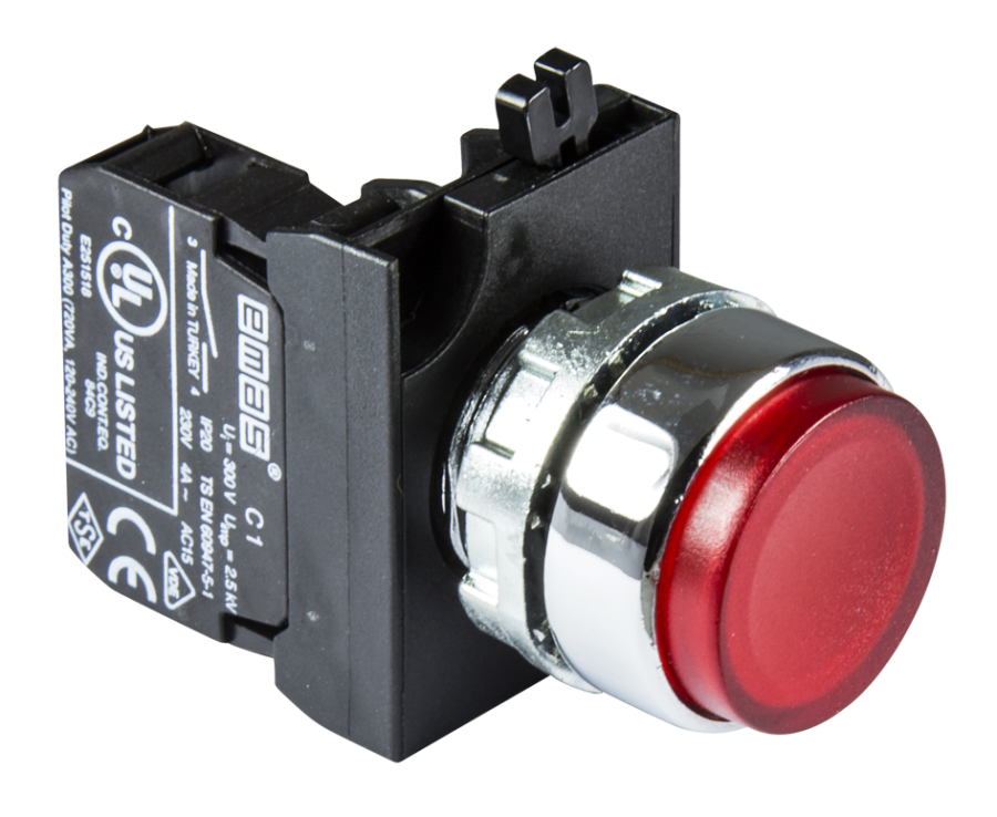Emas CM260HK Metal LED'li 1NC 12-30V AC/DC Yaylı Çıkık Kırmızı 22 mm Buton - 1