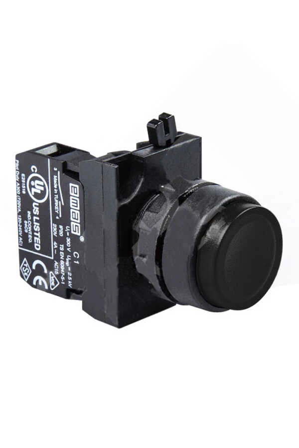 Emas CP100HH Plastik 1NO Yaylı Çıkık Siyah 22 mm Buton