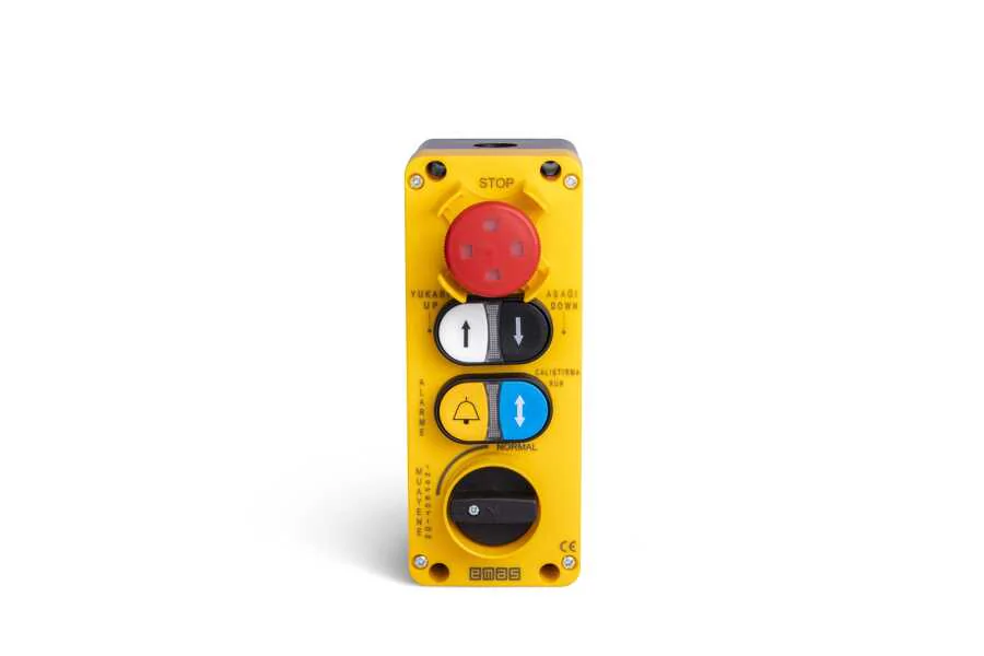 Emas CP101K20SMZO Plastik 2NO Çiftli Düz Sarı-Siyah (Zil+Ok) İşareti Baskılı 22 mm Buton