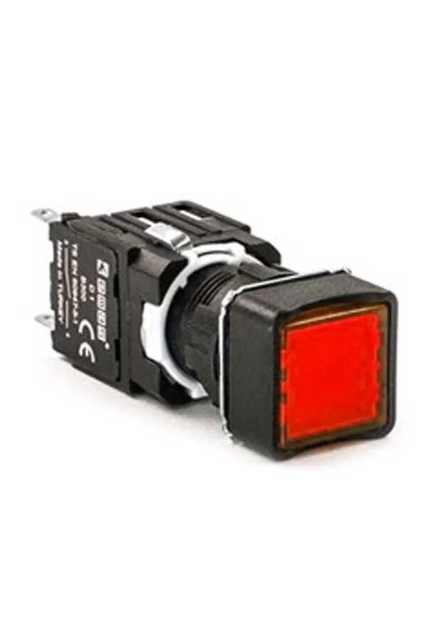 Emas D100KDK Plastik 1NO Yaylı Kare Düz Kırmızı 16 mm Buton