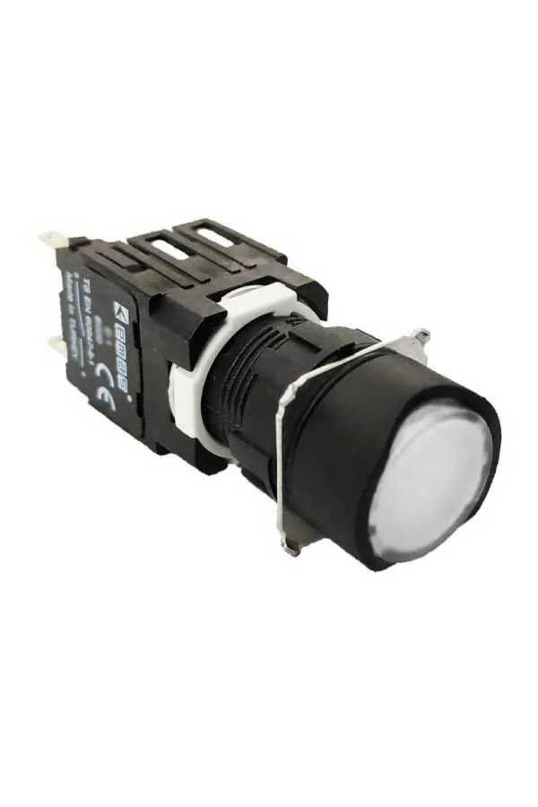 Emas D100YDB Plastik 1NO Yaylı Yuvarlak Düz Beyaz 16 mm Buton