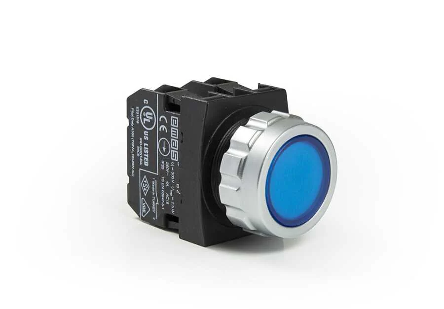 Emas H202DM Plastik 2NC Yaylı Düz Mavi 30 mm Buton