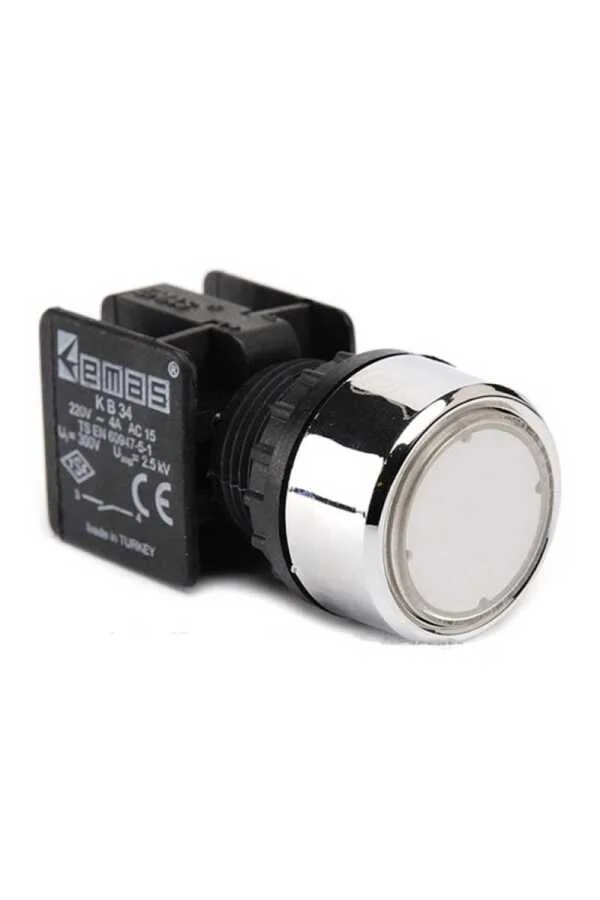 Emas KB12DB Plastik 1NC Yaylı Düz Beyaz 22 mm Buton