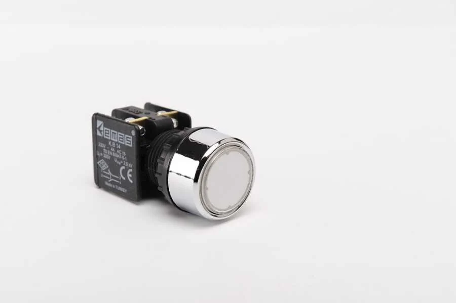 Emas KB14DB Plastik 1NO+1NC Yaylı Düz Beyaz 22 mm Buton