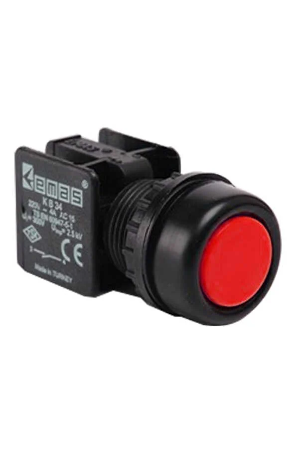 Emas KB34RK Plastik 1NO Yaylı Etanj Kırmızı 22 mm Buton - 1