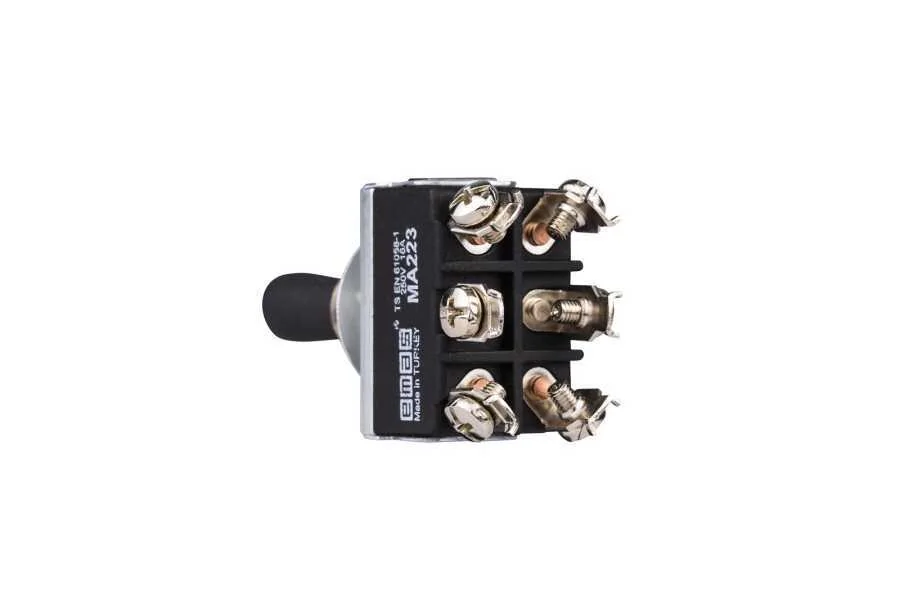 Emas MA223 2NO+2NO Vidalı Plastik Kılıf Tutamaklı (On-Off-On) Baskılı MA Serisi Mandallı Anahtar - 1