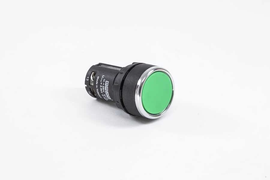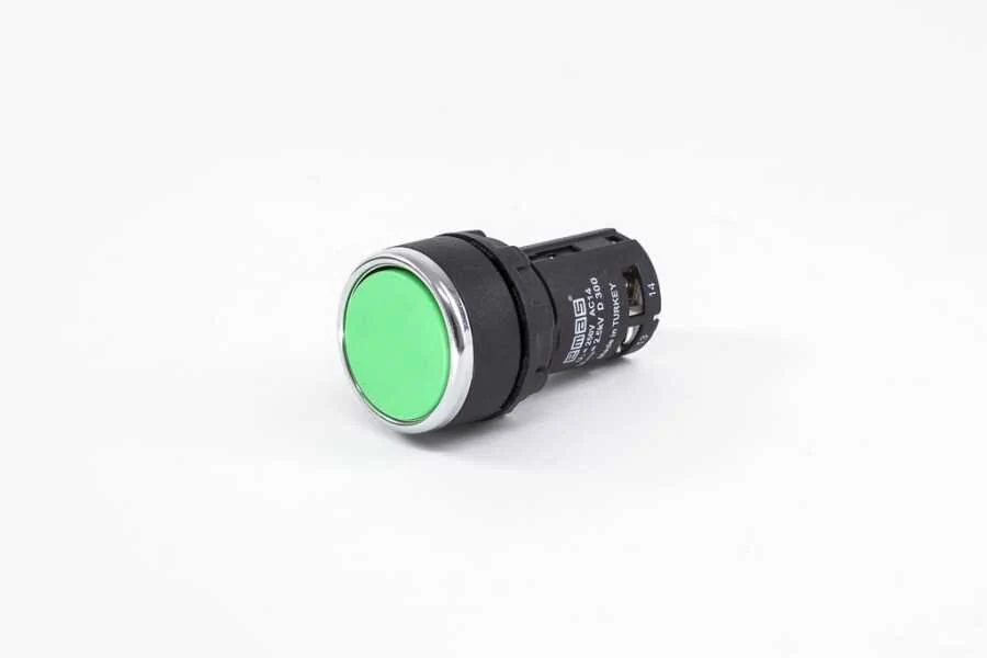 Emas MB100DY Plastik 1NO Yaylı Düz Yeşil 22 mm Buton - 1