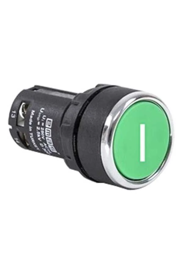 Emas MB100DY1 Plastik 1NO Yaylı Düz Yeşil (I) Baskılı 22 mm Buton
