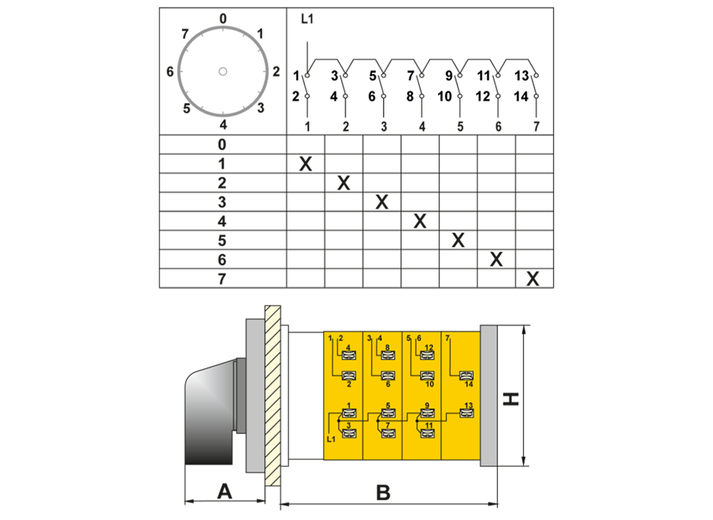 OPAŞ 117 032 - 1X32A 66X66 1 Faz (Monofaze) 7 Kademeli Şalter / 0'Lı