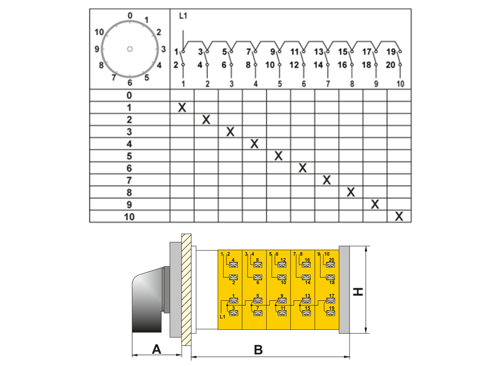 OPAŞ 120 080 - 1X80A 90X90 1 Faz 10 Kademeli Şalter / 0'Sız