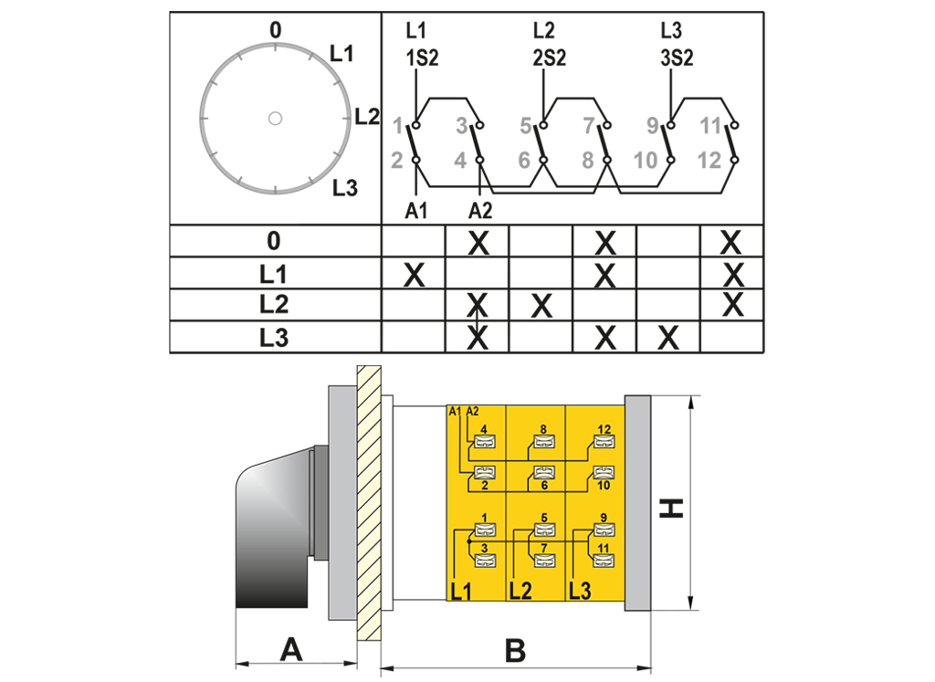 OPAŞ 3A2 M20 - 3X20A 49X49 3 Faz 0'Lı (0-L1-L2-L3) Ampermetre Komütatörü