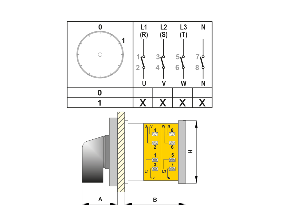 OPAŞ 401 080 - 4X80A 90X90 4 Faz (3Faz + Nötr) Açma Kapama Şalteri