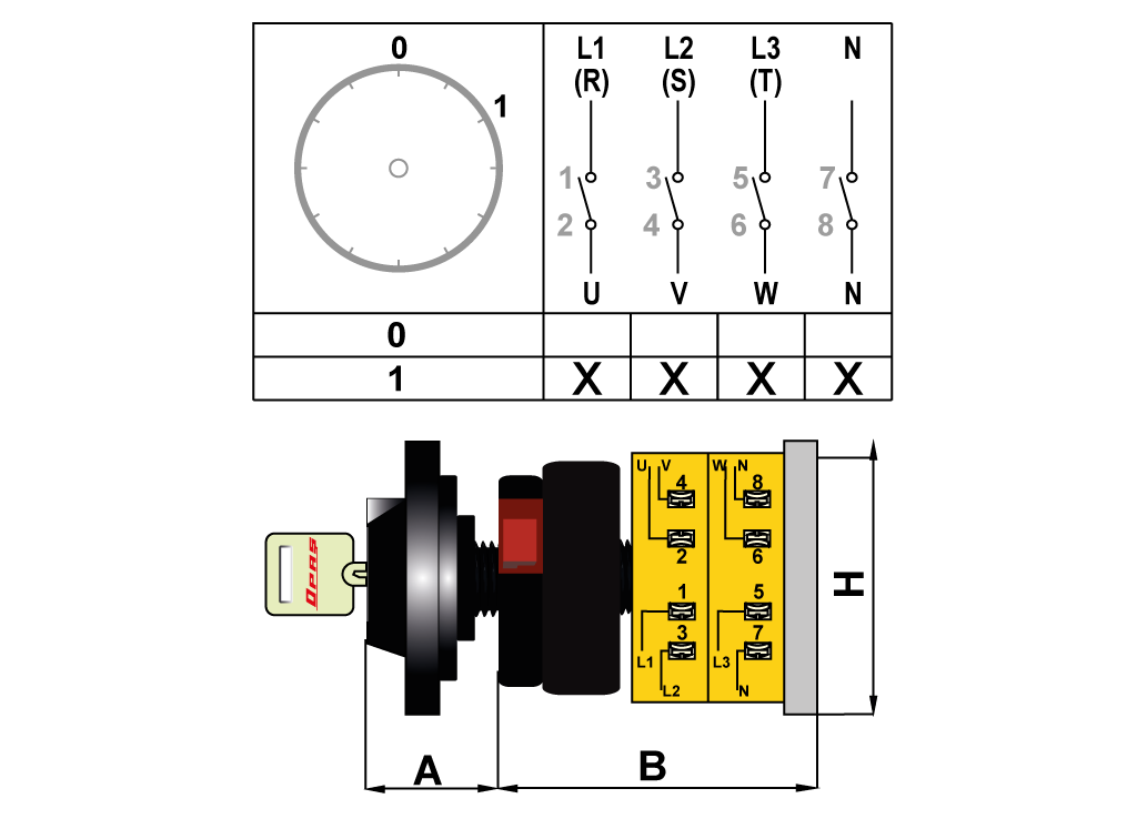 OPAŞ 401 100 - 4X100A 90X90 4 Faz (3Faz + Nötr) Açma Kapama Şalteri