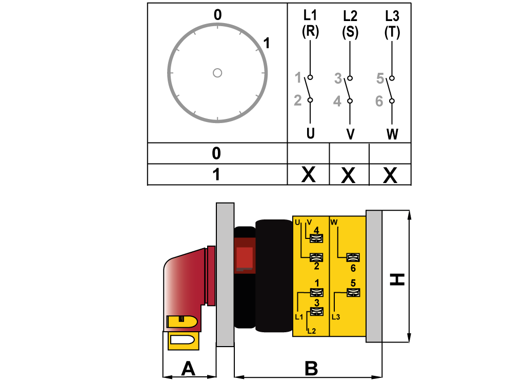OPAŞ YPK XL301 M16 - 3X16A 48X48 3 Faz (Trifaze) Açma Kapama Kolay Montaj Şalteri