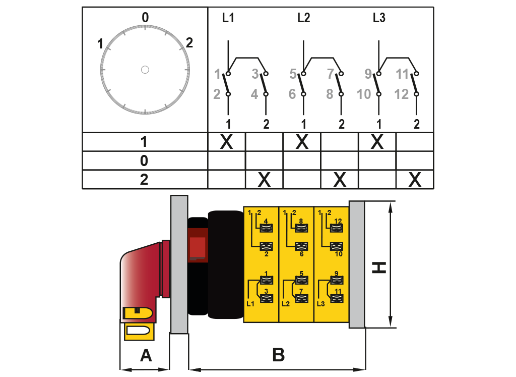 OPAŞ YPK XL305 010 - 3X10A 48X48 3 Faz (Trifaze) Kutup Değştirici Mandaldan Kilitli Şalter