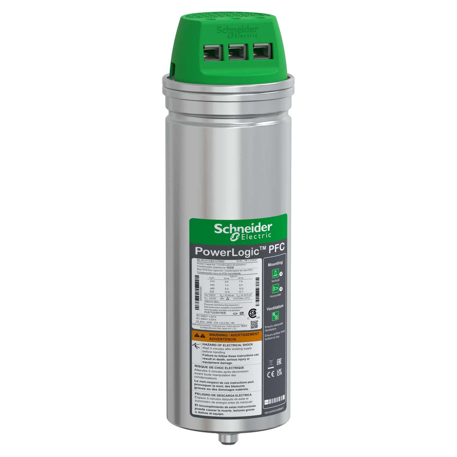 | Electrical Parameters | 10,6 kvar 525 V 50 Hz 12,7 kvar 525 V 60 Hz |
