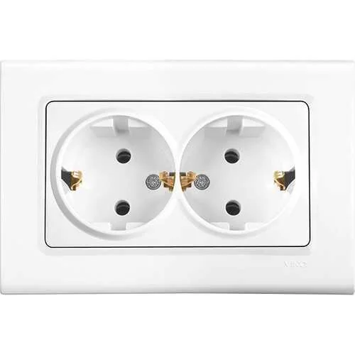 Viko 90440056 Linnera Beyaz İkili Topraklı Priz Mekanizma + Kapak - Çerçevesiz - 1