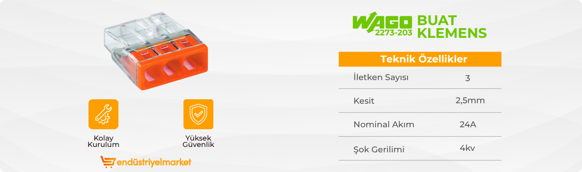 Wago 2273-203 3 İletkenli 3X2,5 mm² Tek Damarlı İletkenler İçin Buat Klemens